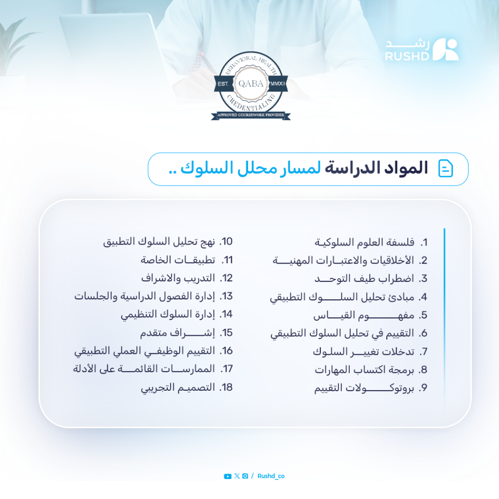 • 18 مادة دراسية لمسار محلل السلوك QBA
