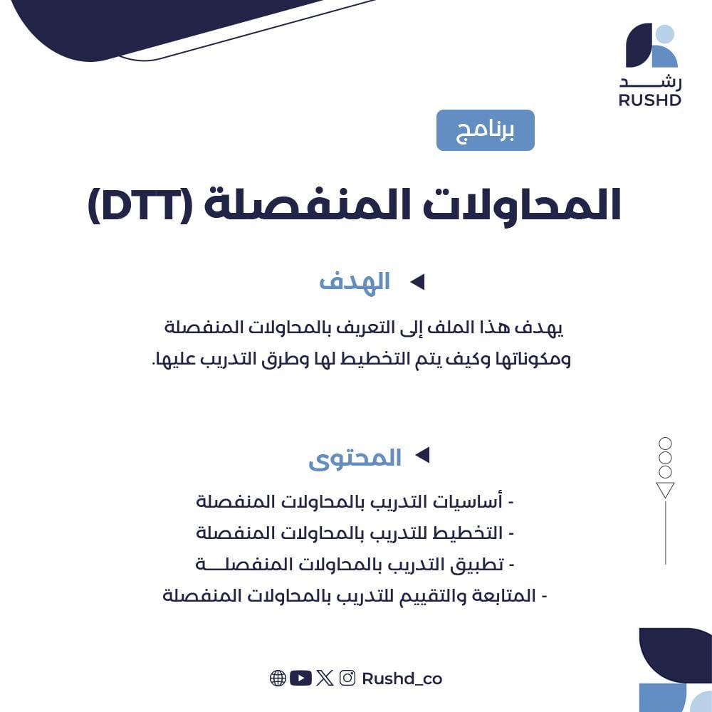 يساعدك هذا الملف على الإلمام بشكل دقيق ومفصل عن مفهوم التدريب بالمحاولات المنفصلة من خلال التعرف على أساسيات التعليم بالمحاولات المنفصلة, التخطيط, التطبيق و التقييم والمتابعة