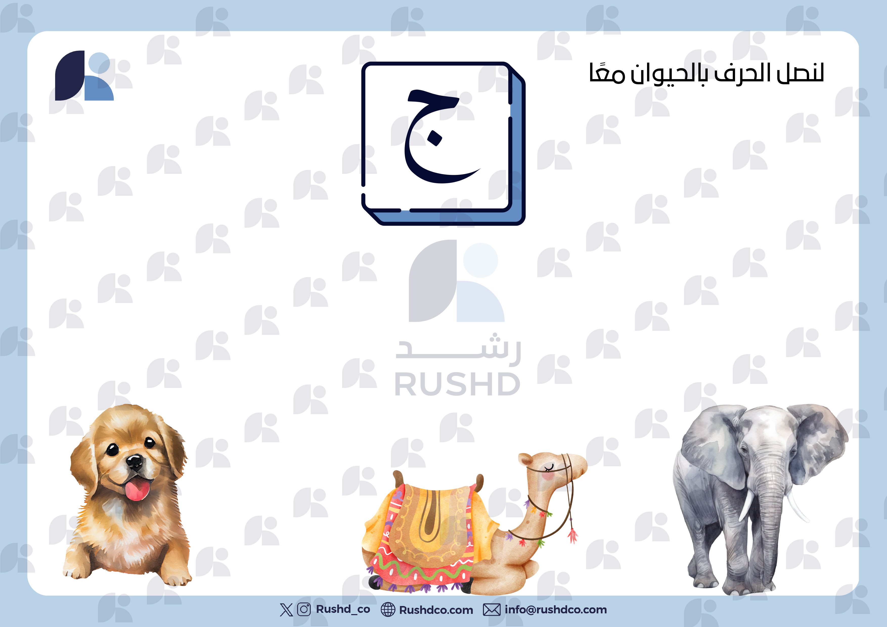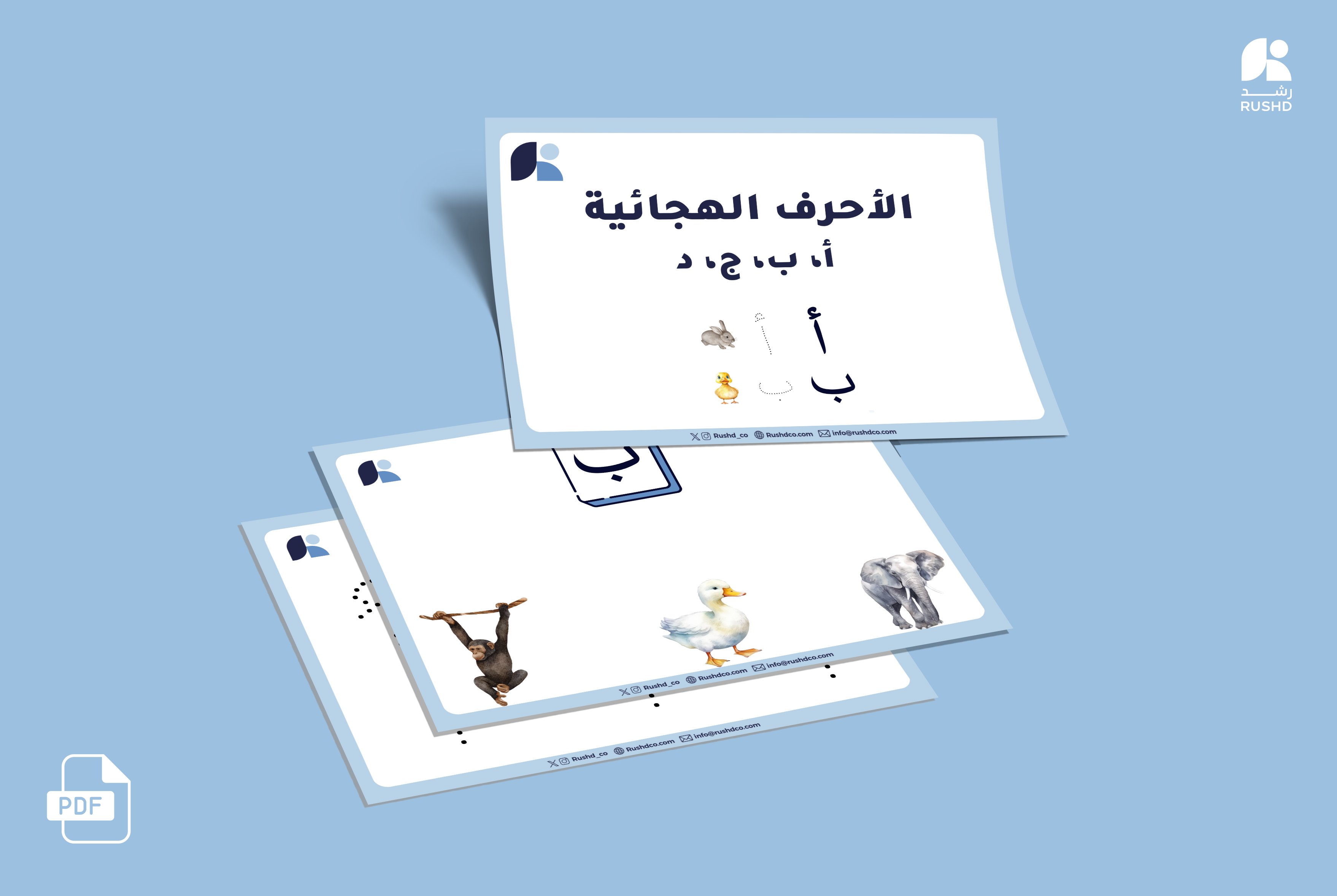 This method is part of the training group on writing the letters of the alphabet in their different positions in the word (beginning, middle, end) of the word. This method facilitates for you to train the child to write the letters of the alphabet (A, B, C, D). What distinguishes this method is that it is graduated. The exercises range from the easiest skill to the most difficult, and it also helps the child remember the letter through pictures that provide visual assistance to the child.