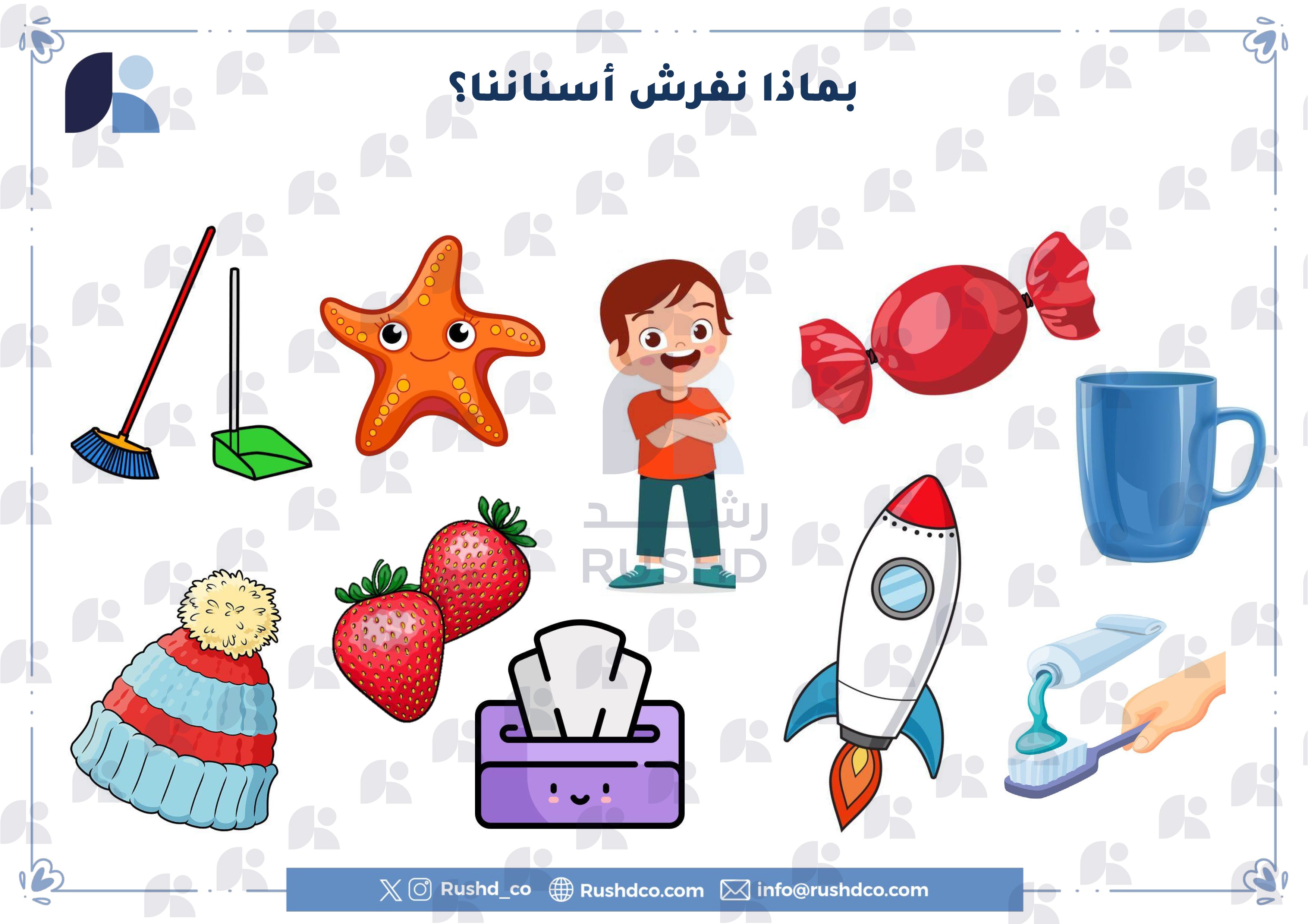 This method was designed to serve the third goal of the second level of the listener response field based on function, form, and class in the VB-MAPP program. This goal helps the learner to distinguish what is asked of him based on function, form, and class from among several different images, for example: What do we write with? How do we brush our teeth? . This method provides you with a set of cards, each card containing 10 different pictures in 25 cards.