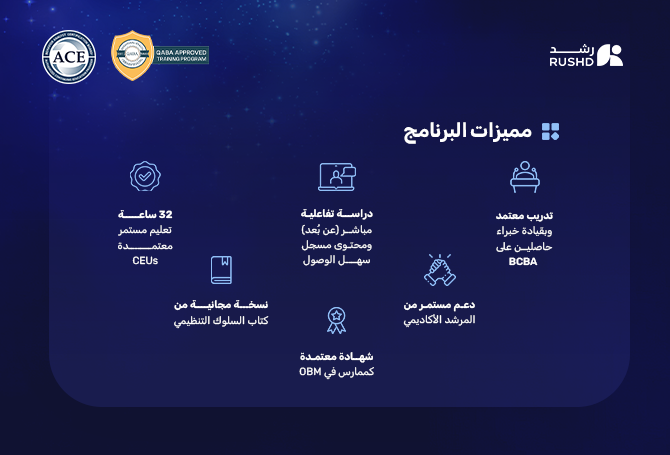 - تدريب معتمد وبقيادة خبراء حاصلين على رخصة محلل سلوك BCBA.