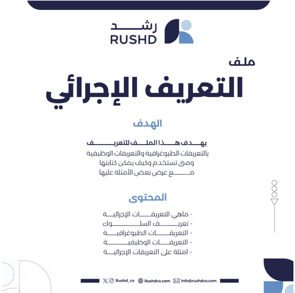 You can learn about the procedural definitions with attached examples through this file. The file consists of 14 pages translated from English to Arabic.