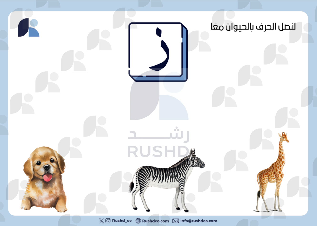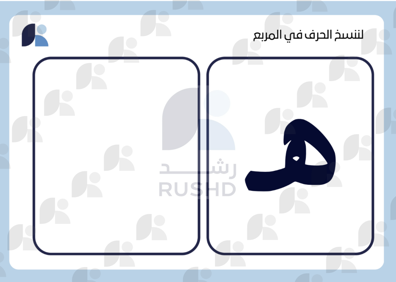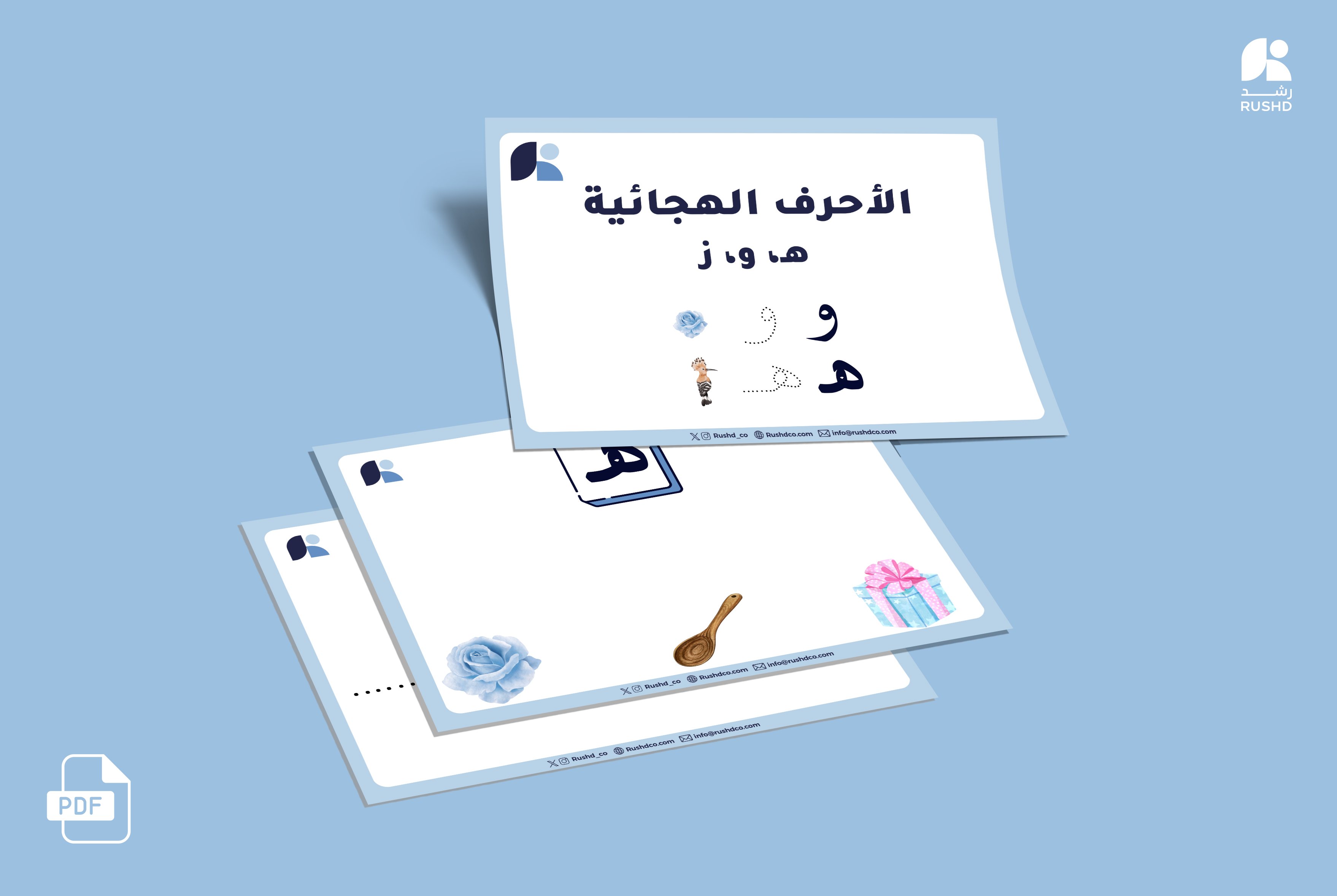 This method is part of the training group on writing the letters of the alphabet in their different positions in the word (beginning, middle, end) of the word. This method makes it easy for you to train the child to write the letters of the alphabet (H, F, G). What distinguishes this method is that it is graduated in training. From the easiest skill to the most difficult, it also helps the child remember the letter through pictures that provide visual assistance to the child.