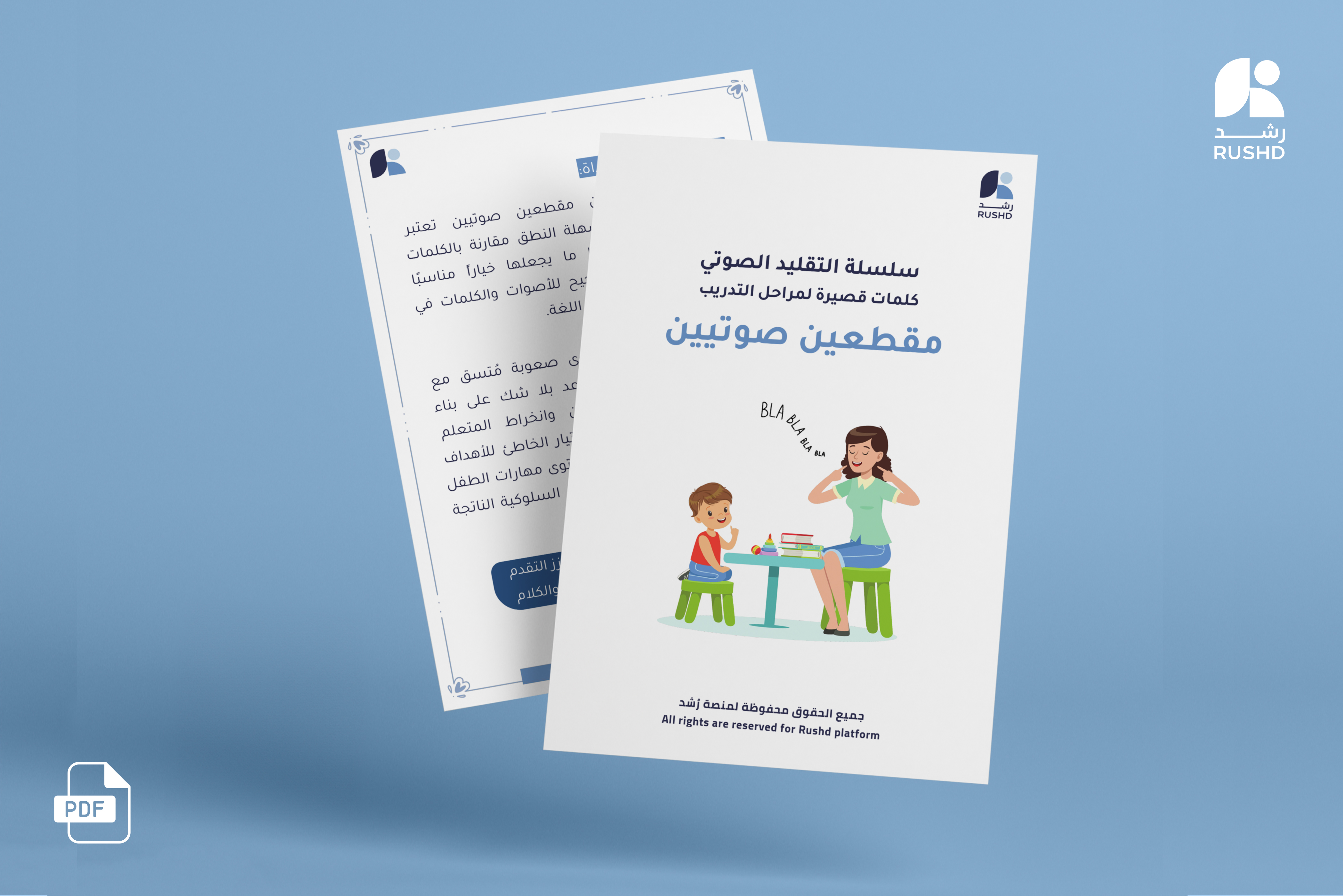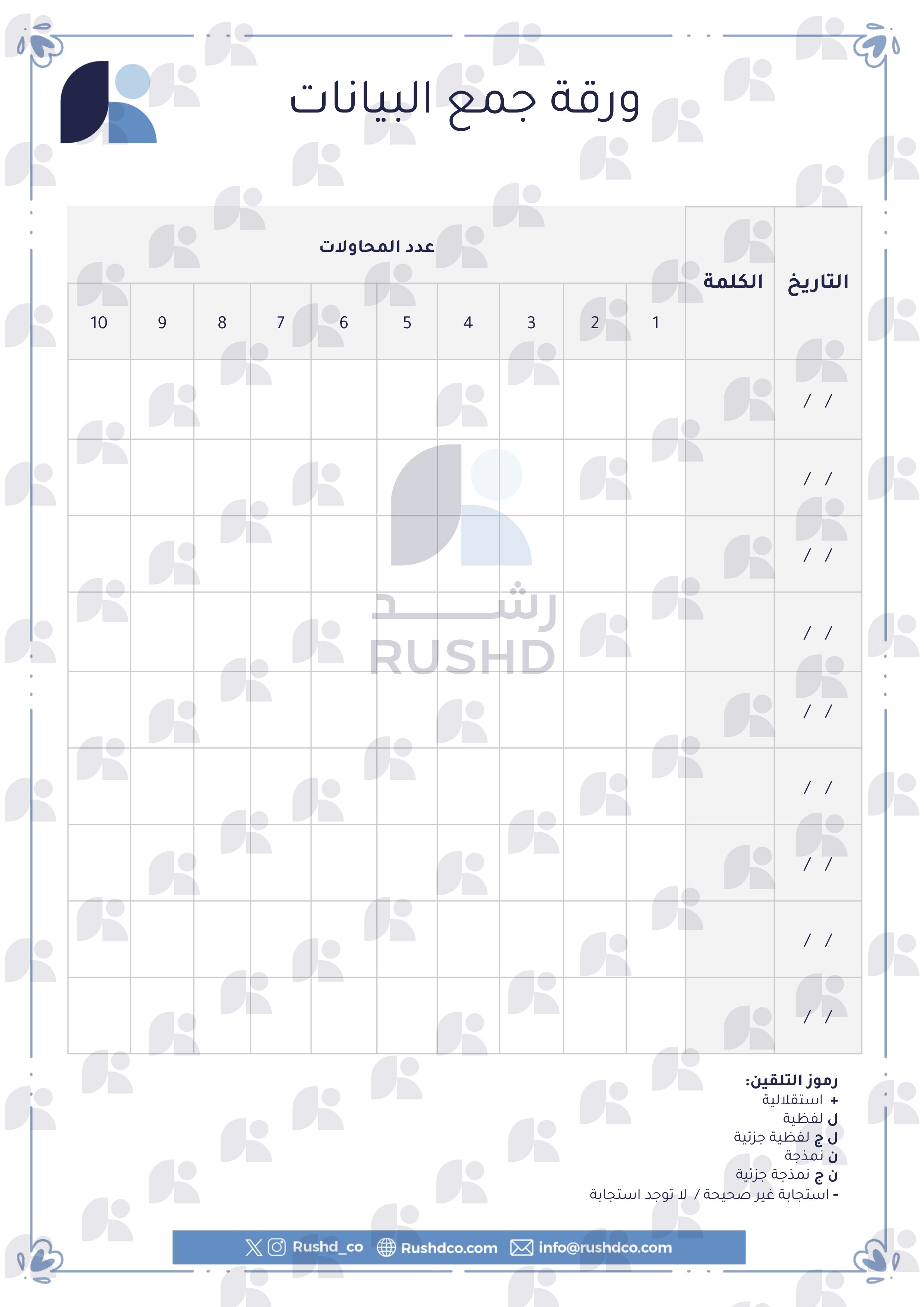 هذا المنتج يحوي قائمة من٤٠ كلمة مُكوّنة من مقطعين صوتيين فقط، بالإضافة الى ورقة جمع بيانات لمتابعة تقدم الطفل خلال التدريب، اختيار الكلمات يهدف الى ضمان توفير تحدي مناسب للأطفال والافراد وفقا لمستواهم اللغوي وقدراتهم التي قد تكون محدودة في مراحل التدريب الابتدائية.
